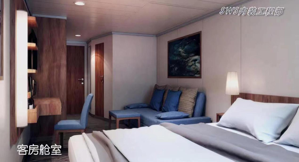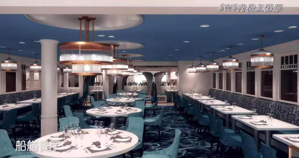 今创在这个巨大的项目中主要承接了艏艉餐厅及主要梯道的电气背景工程总包,线缆长度超过8万米,内装主要承接旅客舱室内装施工604间,其中散装套房264间,预装单元标准房间340间,中部主梯道,棋牌室,火锅餐厅,铁板烧餐厅,四川餐厅,牛排餐厅,寿司店,鱼餐厅及免税商店等。